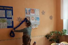 Учащиеся 1 класса совместно с родителями украшают свой класс к празднику Новый год.