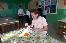 В 10 классе прошла внеурочная деятельность. Вместе с классным руководителем Нигматуллиной Э.Ф. они готовили салат.
