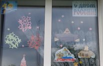 3 һәм 5 нче сыйныф укучылары Хуҗиналар Айгөл һәм Азалия Россия көненә тәрәзәләрен бизәделәр.