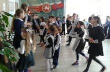 Тәнәфесләрдә дежур класс укучылары күңелле биюләр белән кечкенә дусларын ял иттерәләр.