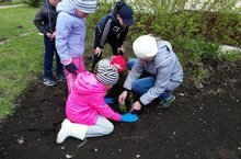 2 нче сыйныф укучылары класс җитәкчесе Зиганшина Г.А. белән мәктәп алды территориясендә туя агачы утырттылар.