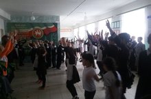 Тәнәфес вакытында барлык класс укучылары фоега җыелып, төрле биюләр башкарабыз.Ял вакытларыбыз файдалы да, кызыклы да үтә.
