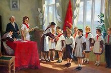 Сегодня в школе организована выставка , приуроченная ко Дню Пионерии.Учащиеся онакомились с правилами Пионеров, вспомнили Героев-Пионеров. Каждую перемену слушали написанные в советское время песни и марши Пионеров, а на экране смотрели кинохроники.