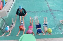 Балалар бакчасының өлкән төркемендә йөзү буенча өйрәтү, шуышуның база күнекмәләрен үзләштерүгә, уен күнегүләре аша (мәсәлән, "Водолаз", "Кыю егетләр"), инвентарь (такта, нудлы) кулланып, 25-30 минут дәвамлылыгы булган суда дөрес сулауга һәм, укытуның телдән, күрсәтмәлелек һәм гамәли ысулларын кулланып, мускулларның көчен киңәйтүгә юнәлдерелгән.