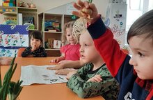 Очередной день в детском саду стал синим. Дети убедились, что вокруг очень много синего цвета.