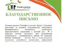 Благодарственным письмо команда прокта "Татнефть и детство. Диалог с будущим". За активное сотрудничество.