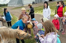 Воспитанники старшей группы посетили конно - спортивную школу. Было показано небольшое, но интересное, представление. После представления небольшая экскурсия по территории школы, дети катались на лошадях, угощали лошадок сахарком, яблоками и морковкой.