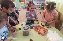 Ребята очень любят заниматься творчеством, поэтому с детьми средней группы решили создать из природного материала композицию. Не прошла стороной, и чудесная пора Осени, которая вдохновляет своей яркостью и пестротой красок на воплощение прекрасных творческих идей. Целью занятия стало развитие художественно-эстетического восприятия, а также приобщение детей к природе, накопление знаний об окружающем мире, развитие их творческих способностей. В своих работах воспитанники средней группы использовали разные природные материалы – шишки, желуди, листья, сухоцветы, веточки, мох, овощи, фрукты, ягоды.