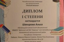 1. Диплом I степени - Шакирова Алиса