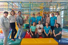Гостевой обмен по использованию 3д физкультурного комплекса, с участием Реутского С.В. (методист ООО "Бабашки", основатель "Школа диалога с препятствиями", создатель методик "Физкультура про другое", "3 д физкультура", "Зарядка с родителями"), воспитателей ДОУ Азнакаевского района. Представили опыт работы с детьми средней, старшей, подготовительной групп, работу с родителями, преемственность в работе специалистов ДОУ и воспитателей по физическому воспитанию.