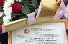Сегодня в Азнакаево прошло мероприятие посвящённое "Дню учителя". Руководитель Исполнительного комитета Азнакаевского района РТ Шамсутдинов А. Х. и Начальник управления образования Гилязова З. С. вручили нашему воспитателю Шафигуллиной Л. Я. Благодарственное письмо от Министерство образования и науки Республики Татарстан.