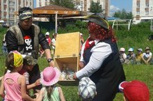 Сегодня у нас настоящая пиратская вечеринка. А там где пираты- всегда увлекательные приключения, поиск сокровищ, забавные конкурсы и состязания на ловкость, быстроту и смекалку. Наши ребята сегодня в отличном настроении и поэтому с заданиями хитрых Пиратов справлялись без труда. Что только они не делали? И пушку заряжали, и сокровища с морского дна добывали, и рыбу ловили. А ещё с помощью старой карты сами нашли клад, и не забыли поделиться сокровищами с Пиратами. Хорошо отдохнули и повеселились, получили много позитивных эмоций и приятную усталость!