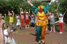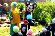 Сегодня 10 июня в детском саду проходил детский праздник. В гости к ребятишкам пришёл клоун Бим. Он устроил детям необычное развлечение- «Шоу мыльных пузырей», поиграл с ними в игры, а потом устроил конкурс- «Рисуем мелом на асфальте». Малыши были рады такому гостю. Ещё бы? Ведь Бим светился от радости и веселья, а ещё постарался, чтобы засветились все вокруг!