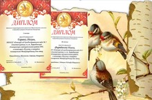 Поздравляем Гараеву Айгуль-воспитанницу подготовительной к школе группы, занявшую 1 место и Фартдинова Нияза - воспитанника средней группы, занявшего 3 место в номинации "Рисунки и плакаты",в конкурсе посвященному Международному Дню птиц. Приикскское территориальное управление Министерства экологии и природных ресурсов Республики Татарстан наградило их и их руководителей - воспитателей ДОУ (Низамиеву Л.А.., Ходакову Н.Н.) Дипломами!