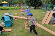 Каждую прогулку дети в детском саду наслаждаются играми на уличном конструкторе. Самостоятельно создают конструкции, которые представляют собой модули различных форм и размеров, соединённые между собой, создавая увлекательное пространство для активного отдыха. «Непоседы» радостно бегают, карабкаются вверх и спускаются вниз по лестницам и горкам, смеются и общаются друг с другом, проявляя фантазию и изобретательность. Это идеальное место для совместных игр, позволяющее детям развивать физическую активность и творческие способности одновременно. 30.07.2025