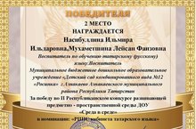 2 место в Республиканском конкурсе развивающей предметно-пространственной среды ДОУ "Среда в среде" 24.12.2018