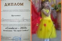 Дипломом награждена воспитанница Миннегалиева Рамина Ришатовна в муниципальном конкурсе детского творчества среди воспитанниц ДОУ города и района "Сомбелэ - 2018" в номинации "Иң зирэк кыз" 22.11.2018