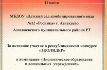 | Короткое название: | МБДОУ “Детский сад комбинированного вида № 12 «Росинка» г.Азнакаево Азнакаевского муниципального района РТ. |