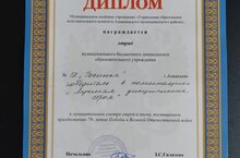 Диплом в муниципальном смотре строя и песни, посвященном празднованию 79 летию Победы в Великой Отечественной войне. Победитель в номинации "Лучшая дисциплина строя". 03.05.2024