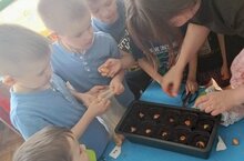 В детском саду №12 росинка в старшей группе прошел экологический урок, в ходе которого создали грядку на подоконнике и учились ухаживать за луком.