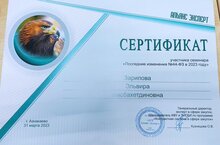 Сертификат Заведующая Зарипова Эльвира Мисбахетдиновна участник семинара "Последние изменения №44-ФЗ в 2023году" 31.03.2023