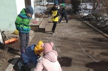 Хорошо всем нам весной, и выходим мы гурьбой. Дружно мы играем: пузыри пускаем, прыгаем в классики, рисуем крестики-нолики. Солнце нам светит улыбается, природа просыпается. Мәктәпкә әзерлек төркеме.Саф һавада йөрү. Подготовительная к школе группа. Прогулка. 31.03.2023