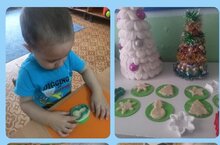 Кружок "Разноцветные ладошки" Рисование ватными палочками "Ёлочка". Группа раннего развития. "Разноцветные ладошки" түгәрәге. Мамыклы таякчыклар белән рәсем ясау "Чыршыкай". 26.12.2022