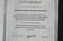 Выступила с защитой проектной работы "Инновационные здоровьесберегающие технологии в работе с детьми дошкольного возраста" воспитатель Фасинва Х.И и получила Сертификат 24.10.2019
