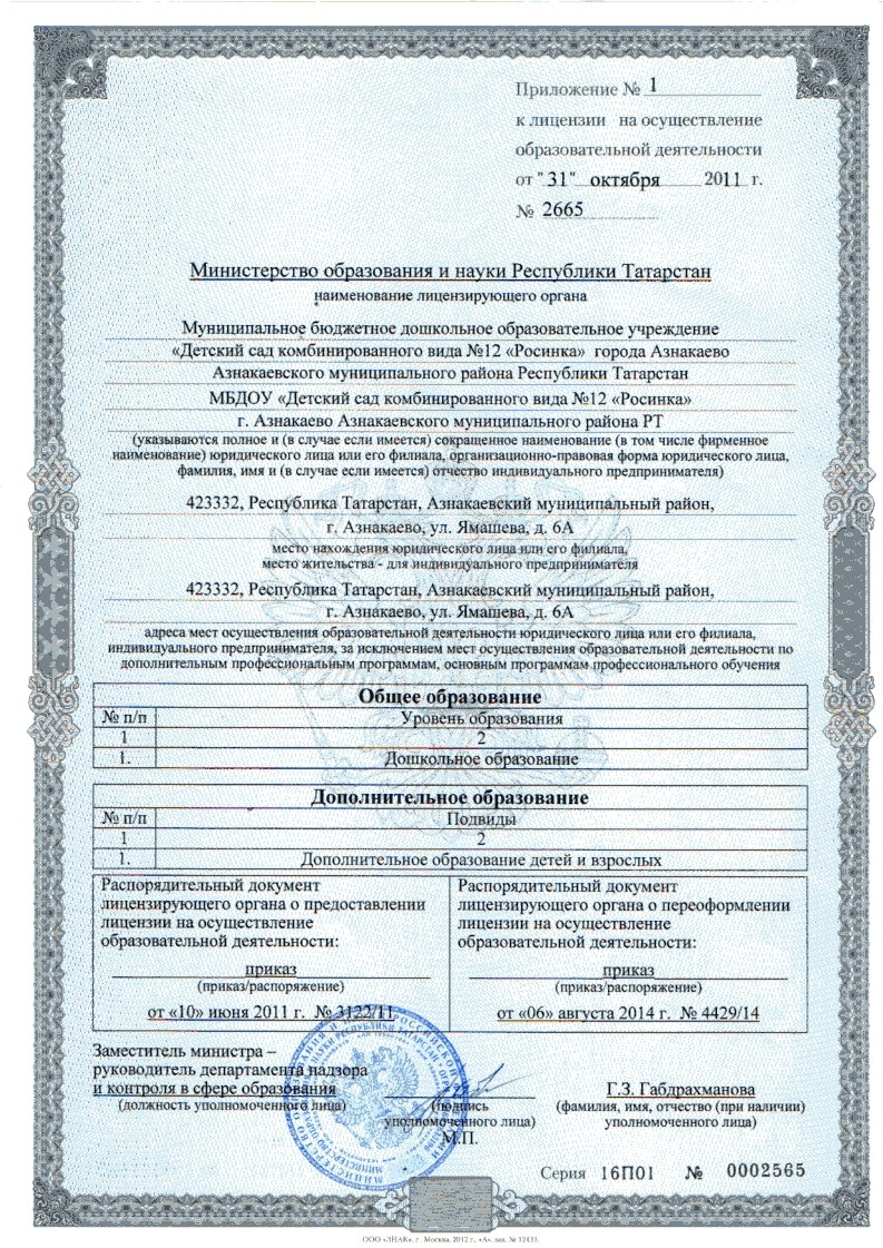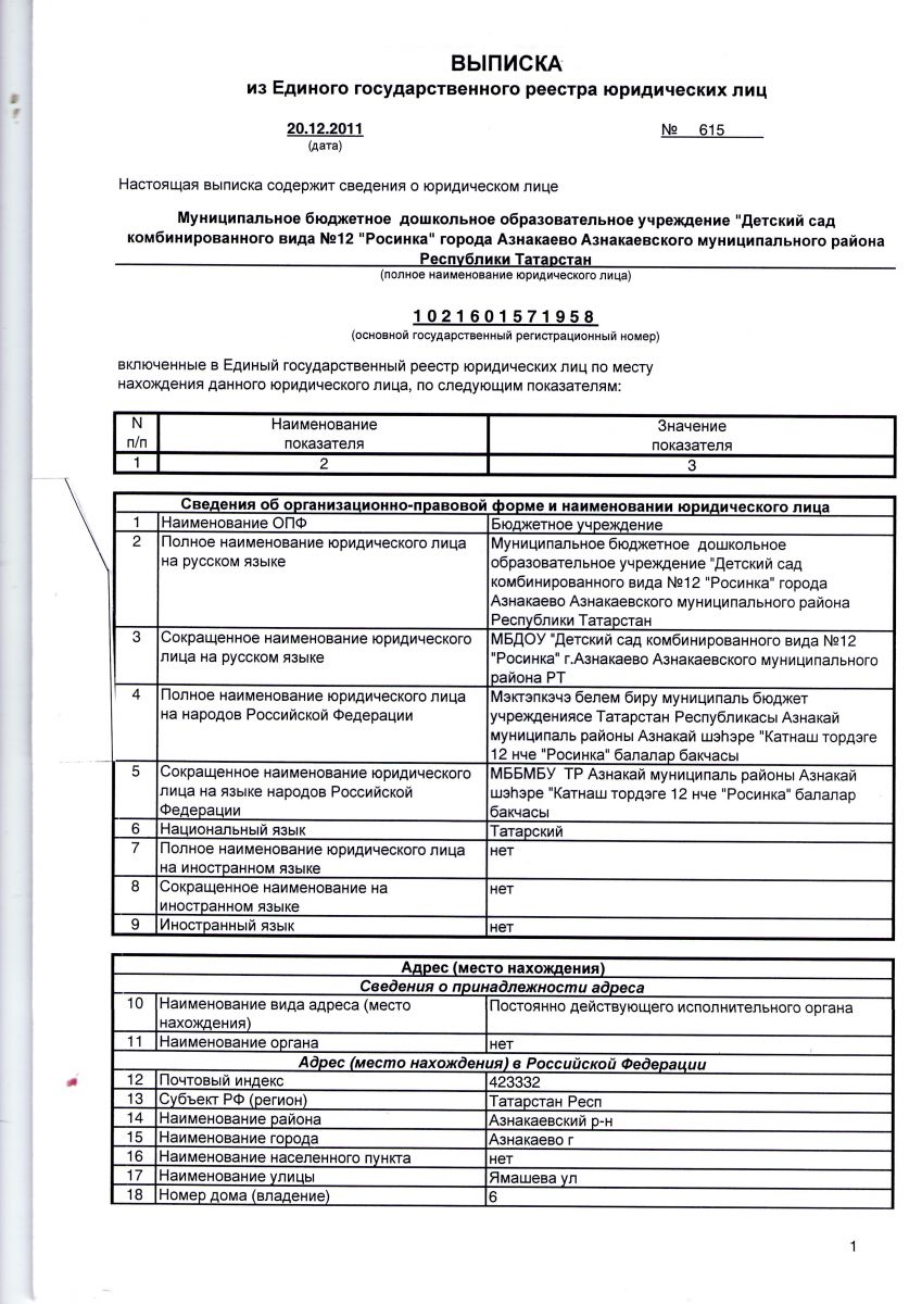 | Короткое название: | МБДОУ “Детский сад комбинированного вида № 12 «Росинка» г.Азнакаево Азнакаевского муниципального района РТ. |