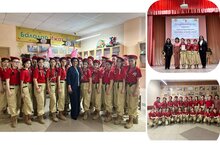 В целях патриотического воспитания подрастающего поколения в МБОУ «СОШ 9 г.Азнакаево» прошел Урок мужества, где приняли участие участник СВО - Каримов Р.Р., руководитель ТОС 9 - Самаров Р.М., начальник ТОС - Габитова З.С.