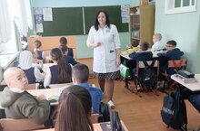 По проекту ,,Школьная медицина,, фельдшер школы #9 Хасибулина А. И. провела классный час в актовом зале, на тему:,, Профилактика клещевого энцефалита,, и ,, Профилактика отравлений,,+ интересные видео материалы о фактах. Очень активно дети участвовали , рассуждали ,как опасно кушать сырые грибы и рыбу в роллах , не свежие молочные продукты , яйцо и мясо. Как важно, в первые часы ,оказать помощь(промывание желудка , дегидратация , сорбенты).Что в первые часы необходима экстренная помощь, при укусе Иксодового клеща (специфическая) вакцинация или экстренная профилактика человеческим иммуноглобулином.(прослушало 120 учеников) 5 классы совместно с школой #6.