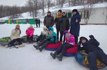 Учащиеся 5а класса(кл.рук.-ль Ахметшина К.Р.) тоже собрались на каникулах на лыжной базе и катались на ватрушках.
