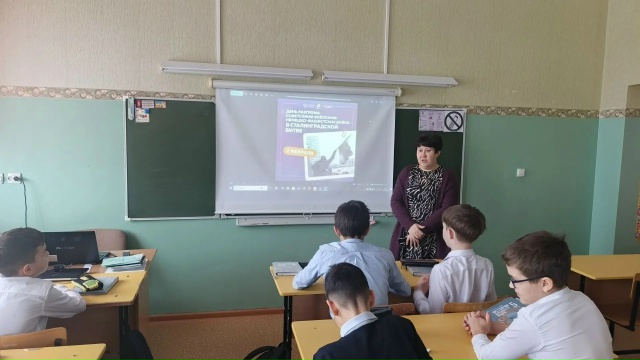 2 февраля – важная дата в календаре нашей страны, В этот день мы чтим подвиги защитников Отечества. День разгрома советскими войсками немецко-фашистских войск в Сталинградской битве. Для учеников 5 классов прошел Кинолекторий «Сталинград».Учащимся показали документальный фильм «Сталинградская битва». После просмотра прошло обсуждение фильма в формате открытого диалога. Это мероприятие позволило молодому поколению глубже понять масштабы и значение одной из самых кровопролитных битв Великой Отечественной войны.