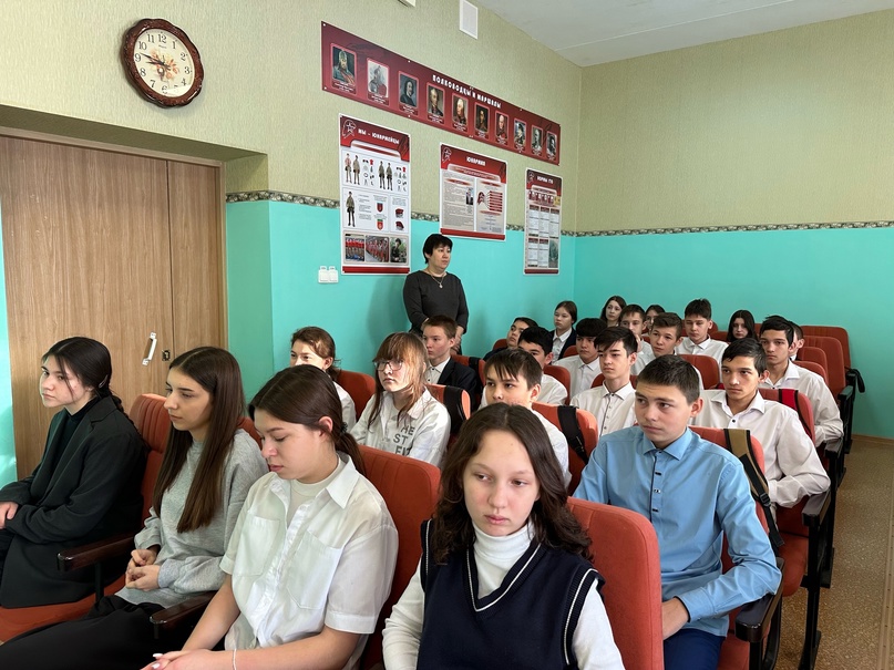 6 декабря в рамках проведения уроков мужества, приуроченных к Дню Героев Отечества в школе была организована встреча обучающихся 8-10 классов с участником СВО Нургалиевым И.Р.Школьные уроки мужества-важный воспитательный момент в формировании у подрастающего поколения активной гражданской позиции, уважения к героическим страницам истории Отечества, лучшим человеческим качествам.Ребята на конкретном примере увидели, что настоящие герои живут рядом, что мужество, храбрость, любовь к Родине-это качества патриота и настоящего гражданина России. В ходе мероприятия дети пожелали гостям крепкого здоровья, благополучной службы и скорейшего возвращения с победой.