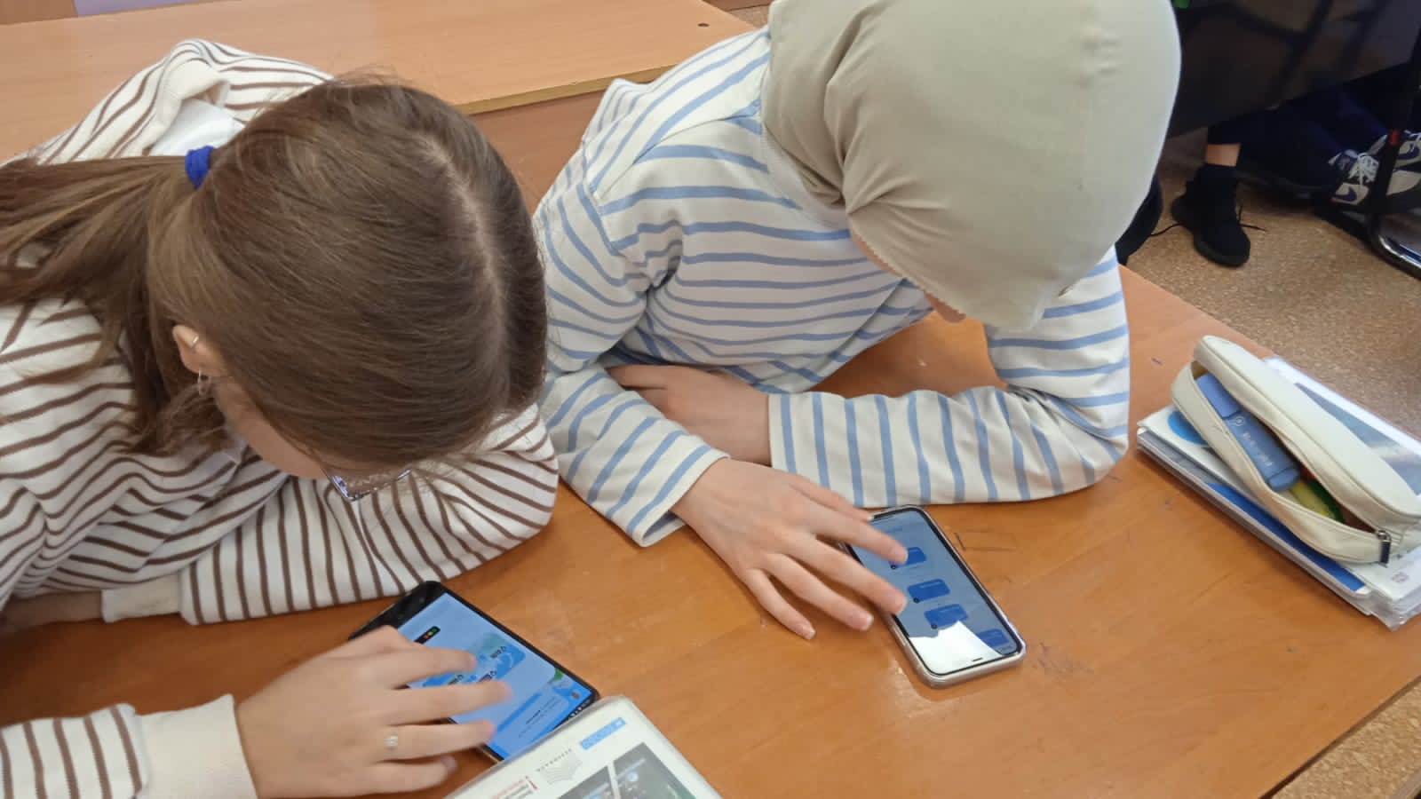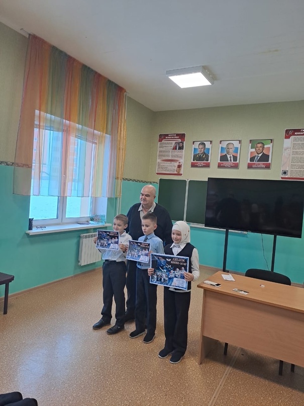Сегодня в нашей школе с 2 классниками проходила встреча с Валеевым Ринатом Фахразиевичем, руководителем Азнакаевской молодёжной радиостанции.Он показал ученикам 15 ый сеанс радиосвязи с космонавтами .За микрофоном был космонавт Константин Борисов .Ученики 2А класса получили дипломы,это Горбунова Янина ,Мусин Рамин,Хайруллин Азамат.Ученики получили массу эмоции и хорошего настроения.