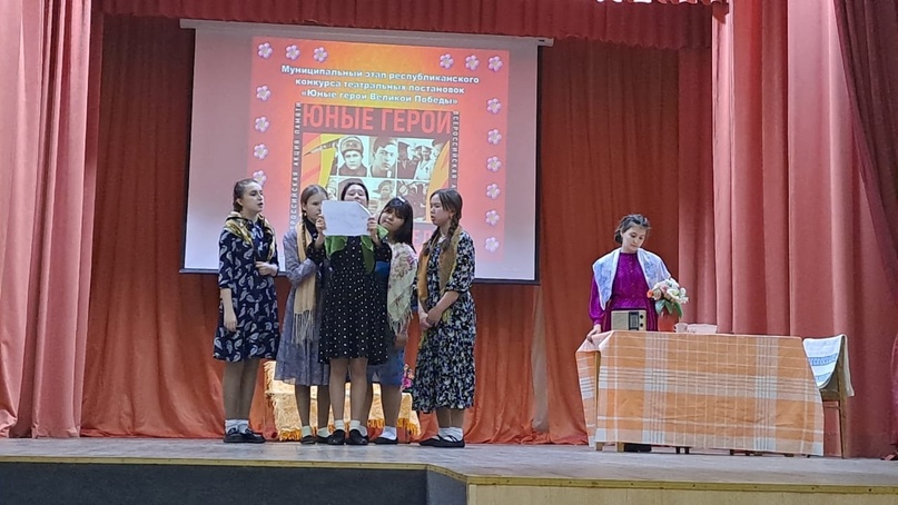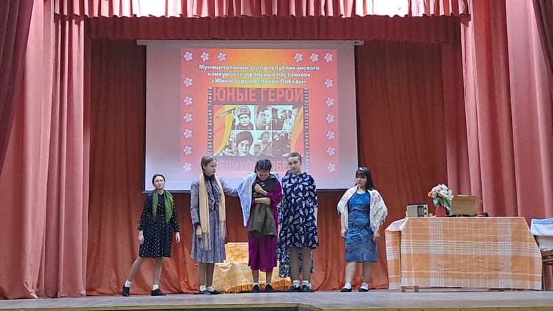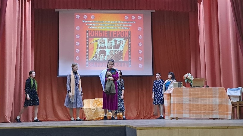 Сегодня наши учащиеся театрального кружка принимали участие в муниципальном этапе республиканского конкурса театральных постановок "Юные герои Великой Победы" и заняли 1 место.Руководитель театрального кружка Залилова М.Р.