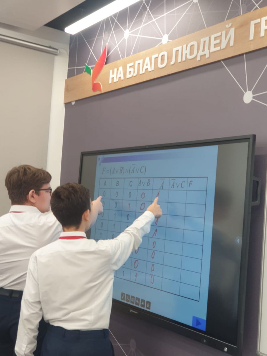 В рамках предметной недели математики и информатики "В мире логики" учитель информатики МБОУ"СОШ №1 г. Азнакаево" Хуснутдинова Р.Р. показала в 8А классе открытый урок информатики "Логические высказывания. Алгебра логики."