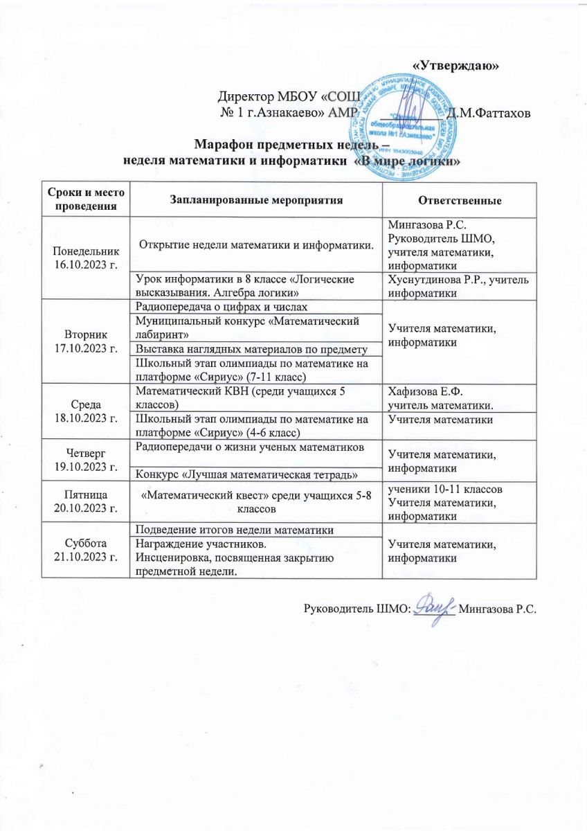 Неделя математики и информатики/Математика һәм информатика атналыгы 16.10.2023