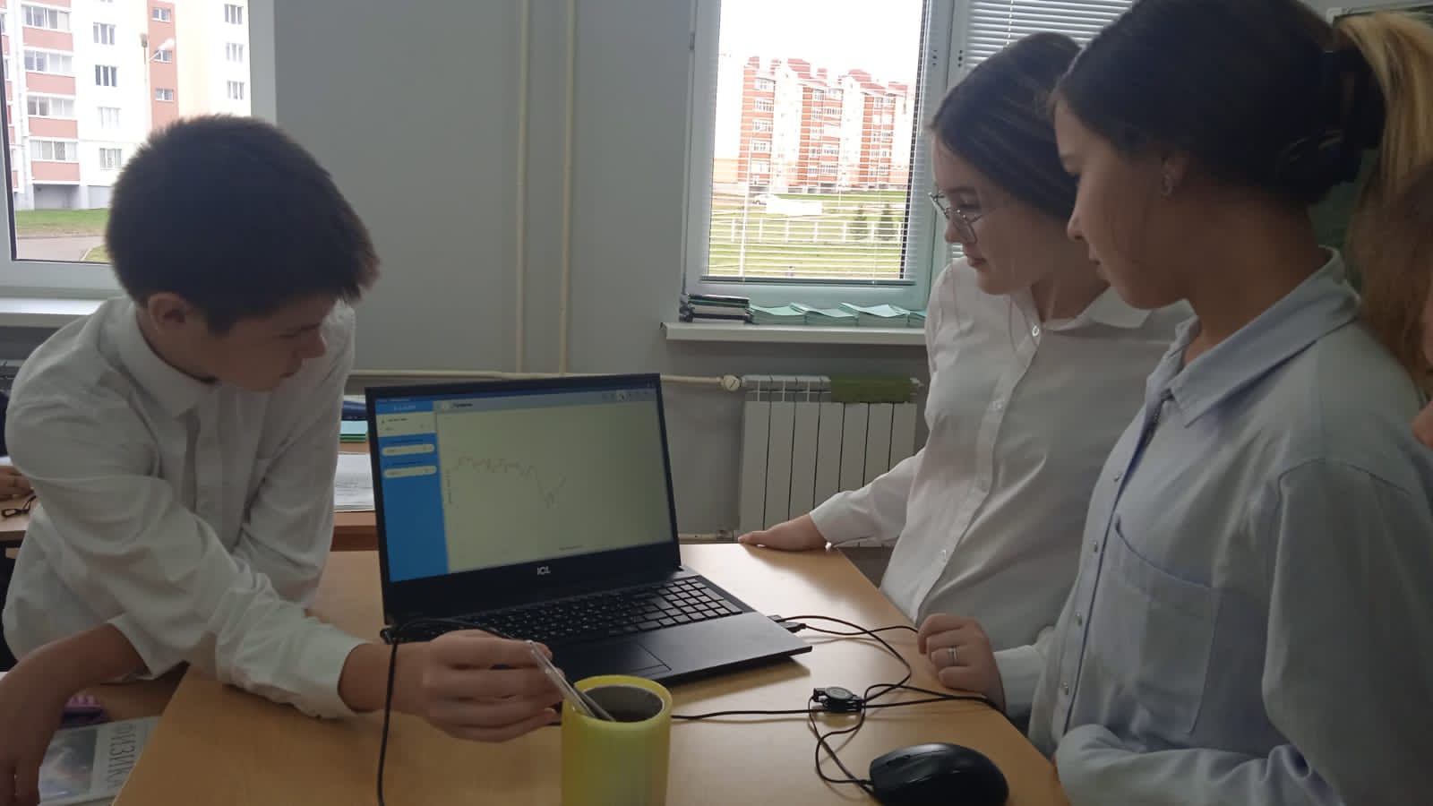 11 октября 2023 года в Центре "Точка роста" прошёл мастер-класс учителя физики Хафизовой З.М. по организации исследовательской деятельности обучающихся с использованием цифровой лаборатории" Измерение температуры при помощи жидкостного термометра и датчика температуры."