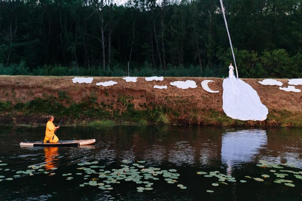 В течение дня велась активная работа на профильных площадках, в творческих лабораториях форума, а вечером был поставлен перформанс "Путешествие".