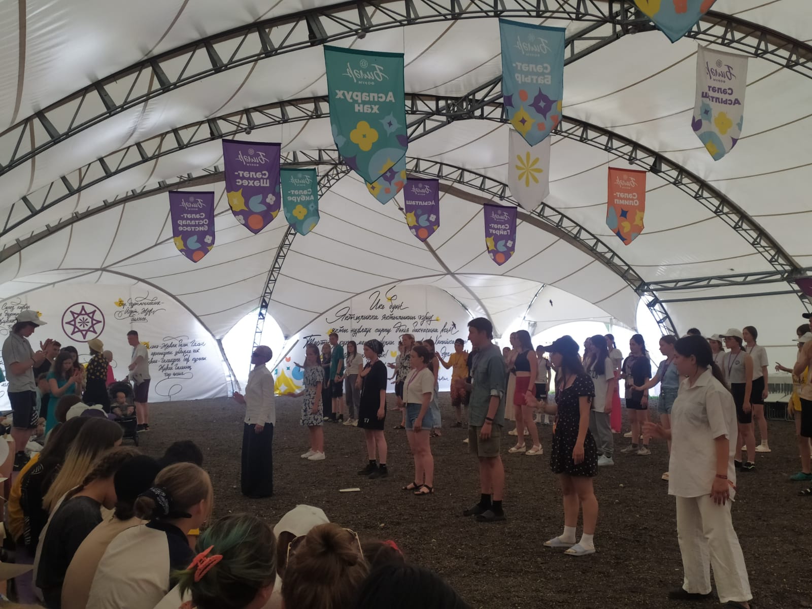 Веселые и полезные каникулы девушек в "Сәләт" продолжаются. Сегодняшний день запомнился мастер-классом Розы Хайруллиной. После ежедневной работы профильных площадок, творческих лабораторий форума, вечером для участников был организован интерактивный вечер "ИжатФест".