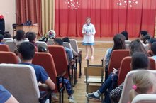 В рамках акции "Жизнь без наркотиков" фельдшер школы Хабибуллина Ф.Ф. с ребятами пришкольного лагеря "Олимп" и трудового лагеря "К.Р.У.Т.О" провела профилактическую беседу.