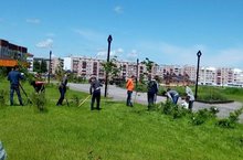 Ребята трудового лагеря "К.Р.У.Т.О" работали в парке семьи на закрепленной за школой территории: очистили от сорняков и мусора.