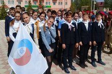 Активисты РДШ 7А класса пилотной 1 школы г.Азнакаево приняли участие на параде,посвященном Дню пионерии.