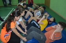 На сей раз школьный этап соревнований проводится среди учащихся 7-х классов. В многоборье входит 5 видов состязаний: прыжок в длину с места, наклон вперед сидя, подъем туловища, челночный бег 3x10 метров и подтягивание у юношей (отжимание у девушек). В чем особенность этих соревнований? В том, что здесь принимают участие не сборная школы, а только обучающиеся одного класса, и каждый ученик, набирая баллы, вносит вклад в общую копилку команды. В зачет идет 7 лучших результатов. Командные результаты подводятся. Молодцы ребята! Так держать!
