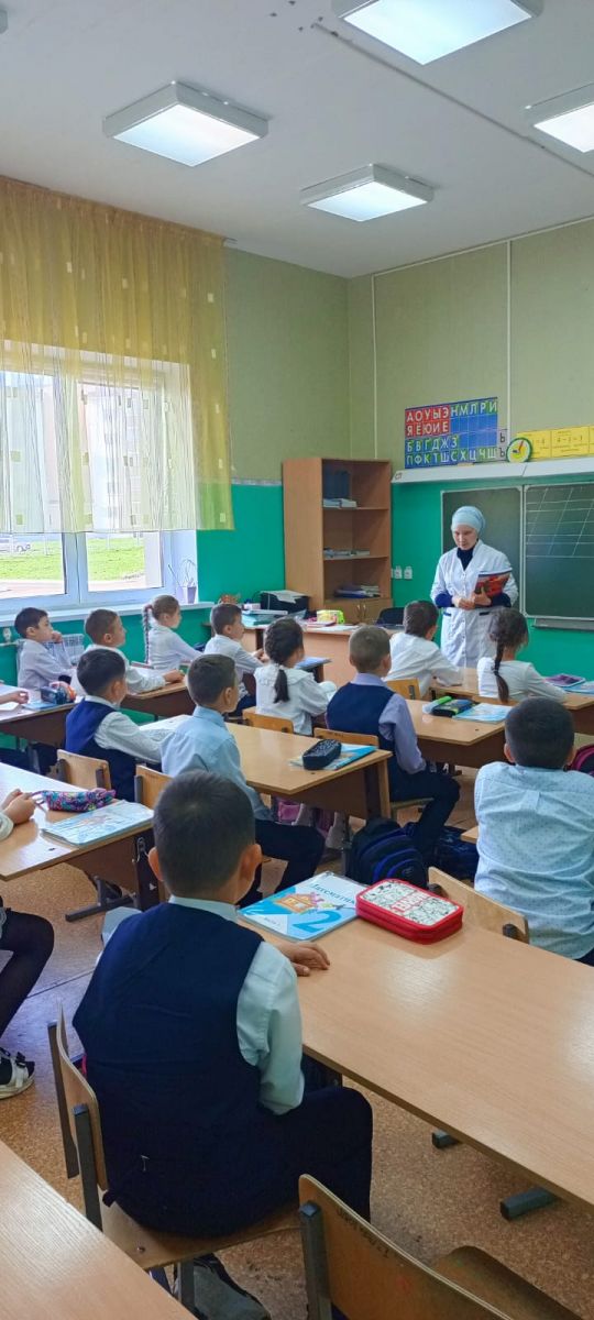 Бүген мәктәп фельдшеры Ф. Ф. Хәбибуллина укучыларда йод җитмәүне кисәтү турында әңгәмә үткәрде. Лекцияне 20 укучы тыңлады. Балаларда йод җитмәү халәтен профилактикалау өчен массакүләм профилактика үткәрелә, аның нигезендә Азык тозын йодлаштыру ята. Индивидуаль профилактика табиб киңәше буенча йод препаратларын кабул итүне үз эченә ала.Составында йод булган ризыкларны - диңгез продуктларын, балык, диңгез кәбестәсен, фейхоа җимешләрен, әстерхан чикләвеген, карабодай ярмасын ашау организмда йод җитмәүне кисәтә.