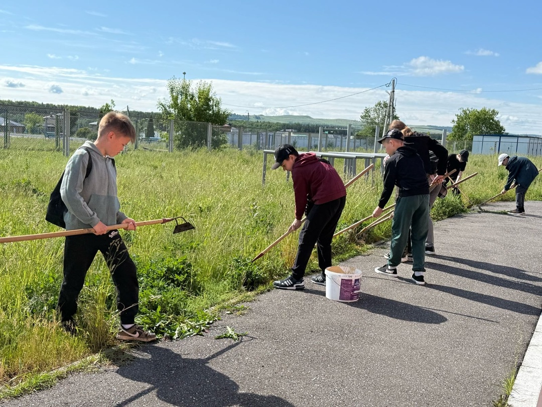 Школа начинается с пришкольного участка, поэтому летняя трудовая практика учащихся занимает важное место в работе школы.Учащиеся 5 класса работают на пришкольном участке: занимаются прополкой, поливкой цветов, уборкой территории школы.