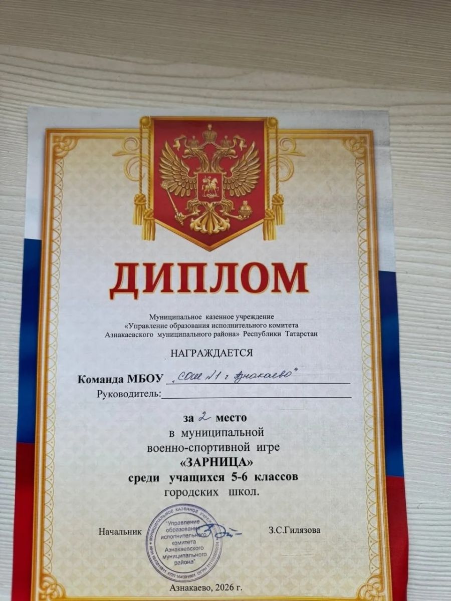Сегодня состоялся муниципальный этап военно-спортивной игры «Зарница» среди учащихся 5–6 классов общеобразовательных организаций. Команда МБОУ «СОШ № 1 г. Азнакаево» РТ в очередной раз подтвердила высокий уровень подготовки в военно-прикладных дисциплинах и заняла 2 место.Этот результат стал логическим продолжением системной работы школы по гражданско-патриотическому воспитанию молодежи. Поздравляем призеров и их руководителей с успешным выступлением!