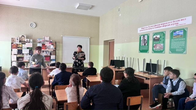 Бүген мәктәптә Советлар Союзы Герое, Ленин премиясе лауреаты Муса Җәлилнең тууына 120 ел тулуга багышланган Батырлык дәресе узды.Чара тематик станцияләр буйлап мавыктыргыч сәяхәт форматында төзелде. 5 класс укучылары командаларга бүленеп, мәшһүр шагыйрьнең тормышына һәм иҗатына чумып, Бер-бер артлы биремнәр үттеләр. Станцияләрдә балалар М.Җәлилнең биографиясе турындагы сорауларга җавап бирделәр, аның шигырьләреннән өзекләр карадылар, сөйләделәр, "Моабит дәфтәрләре" нең - фашистлар төрмәсендә тудырылган шигъри мирасның әһәмияте турында фикер алыштылар.Дәрес укытучы-китапханәче үткәргән викторина белән тәмамланды.Викторина барышында командалар М.Җәлилнең тормышы һәм иҗаты, шулай ук аның батырлыклары турындагы фактларны белүдә көч сынаштылар. Командалар бик яхшы нәтиҗәләр күрсәттеләр, шуннан соң җиңүче командалар билгеләнде: 1 урын-5А сыйныфы 2 урын-5Б , 5В сыйныфлары 3 урын-5Г сыйныф Молодцы!!!Котлыйбыз!