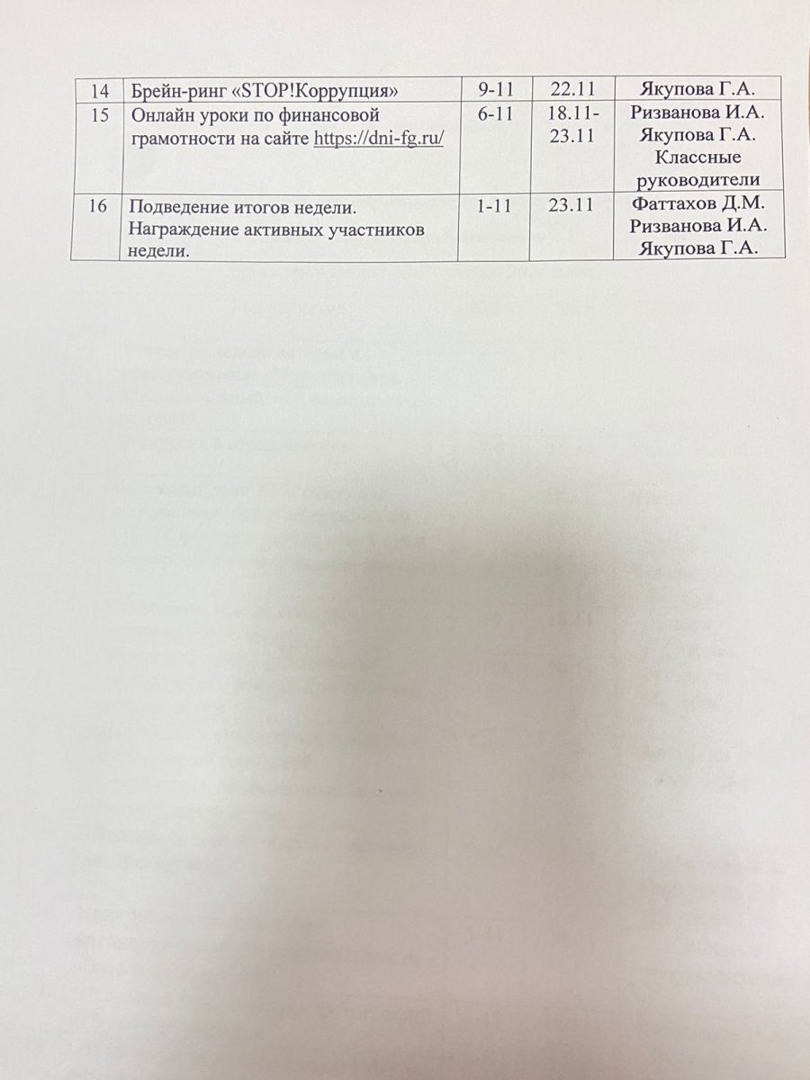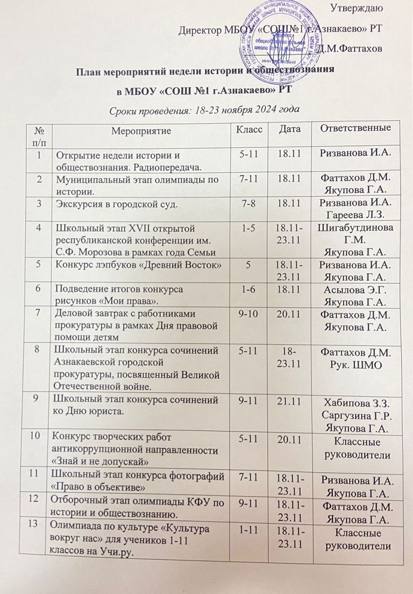 План недели истории и обществознания/ Тарих һәм җәмгыять белеме атналыгы планы